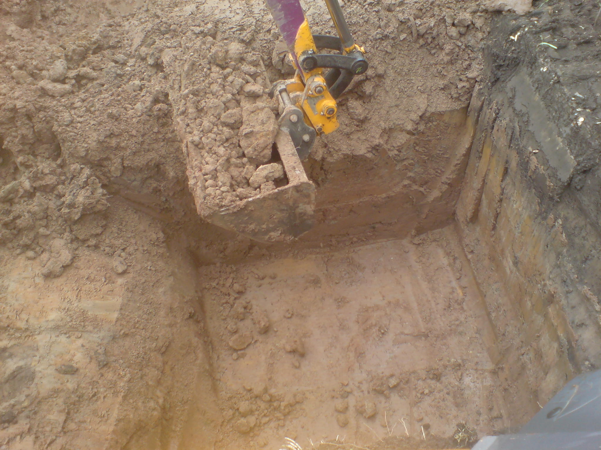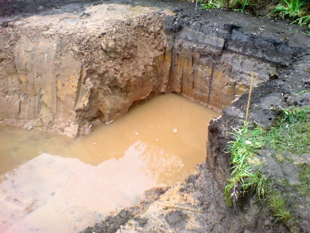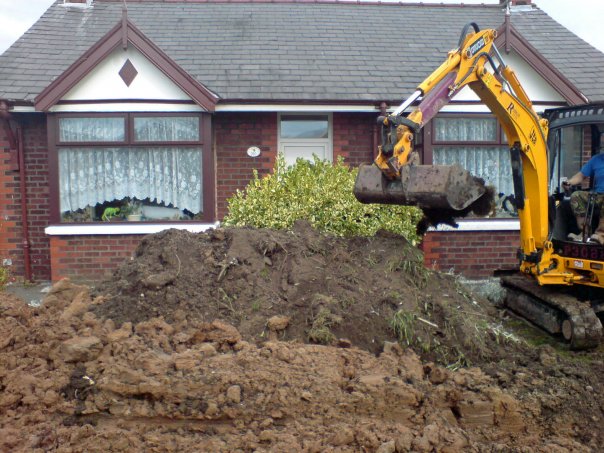As you can see there was only 2ft of soil, and then the rest was solid clay. I really mean solid too. My husband who was driving the 3tonne dumper truck got stuck down the side of the house. In the end the digger driver had to dig up the side of the house down to the clay so that we could get around that problem.