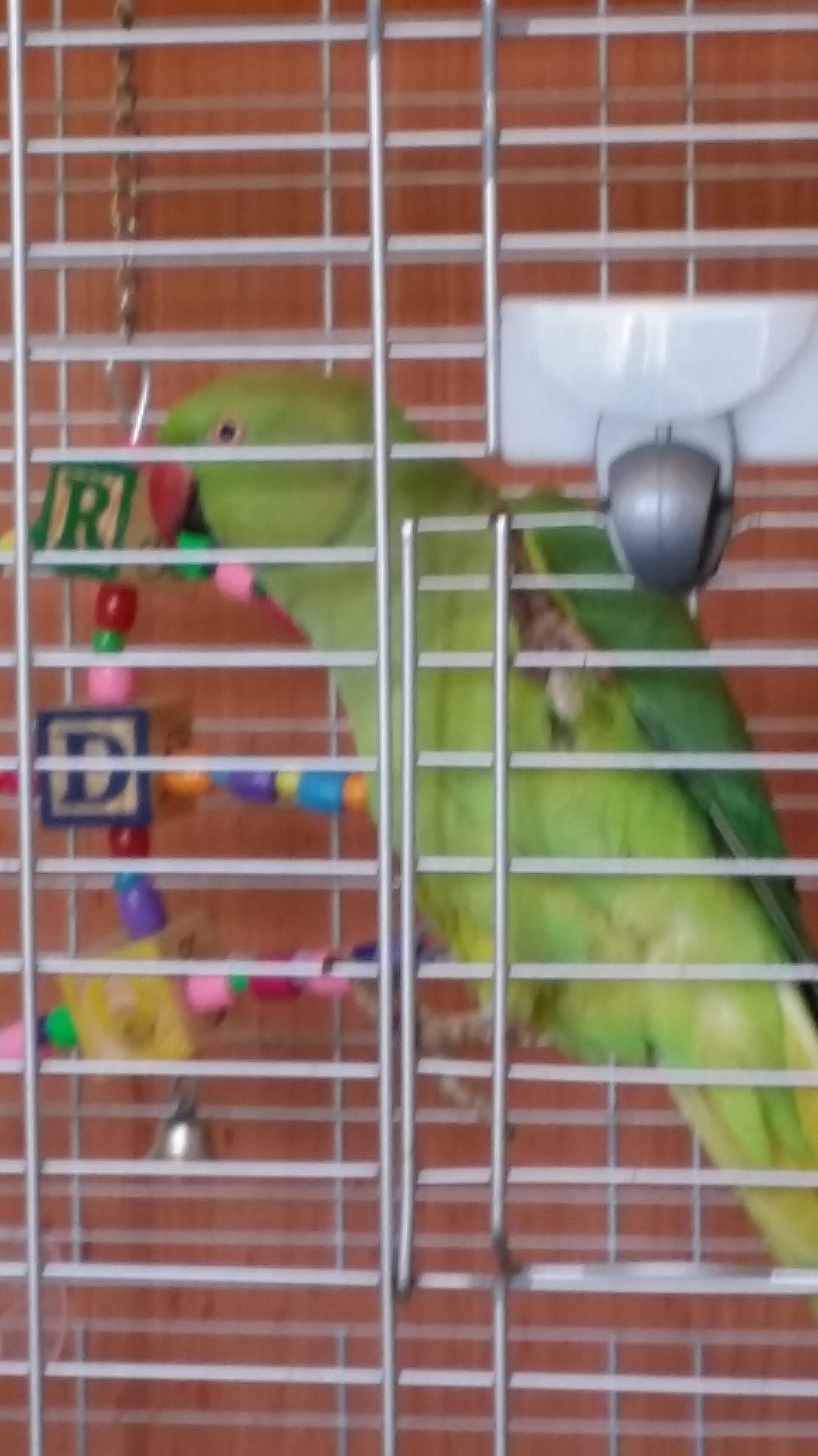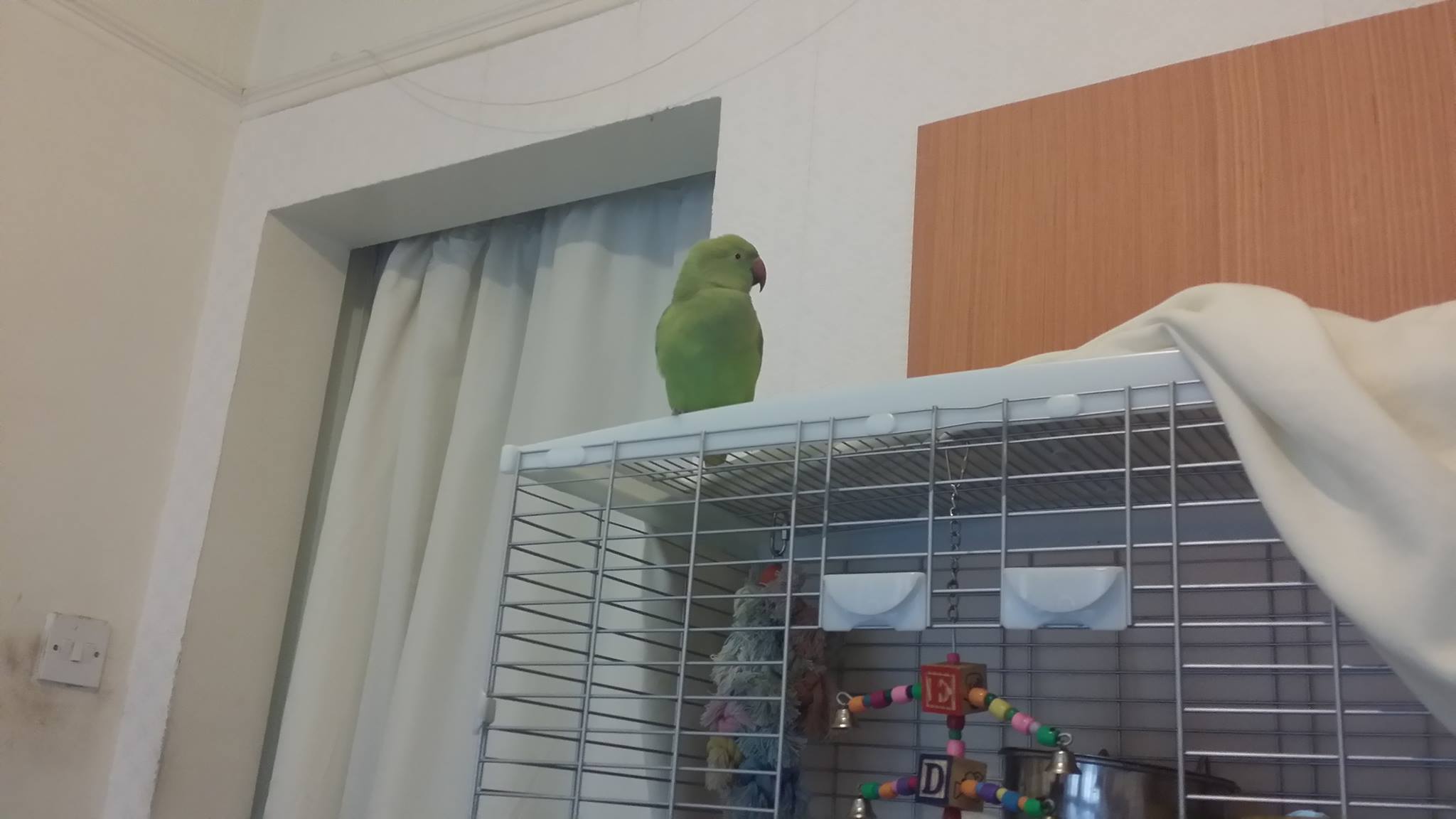 So, training began and now I’ve had the door open for twenty minutes. She’s been out, sat on top of the cage, beak grinding I might add… and has now gone back in for some more breakfast.