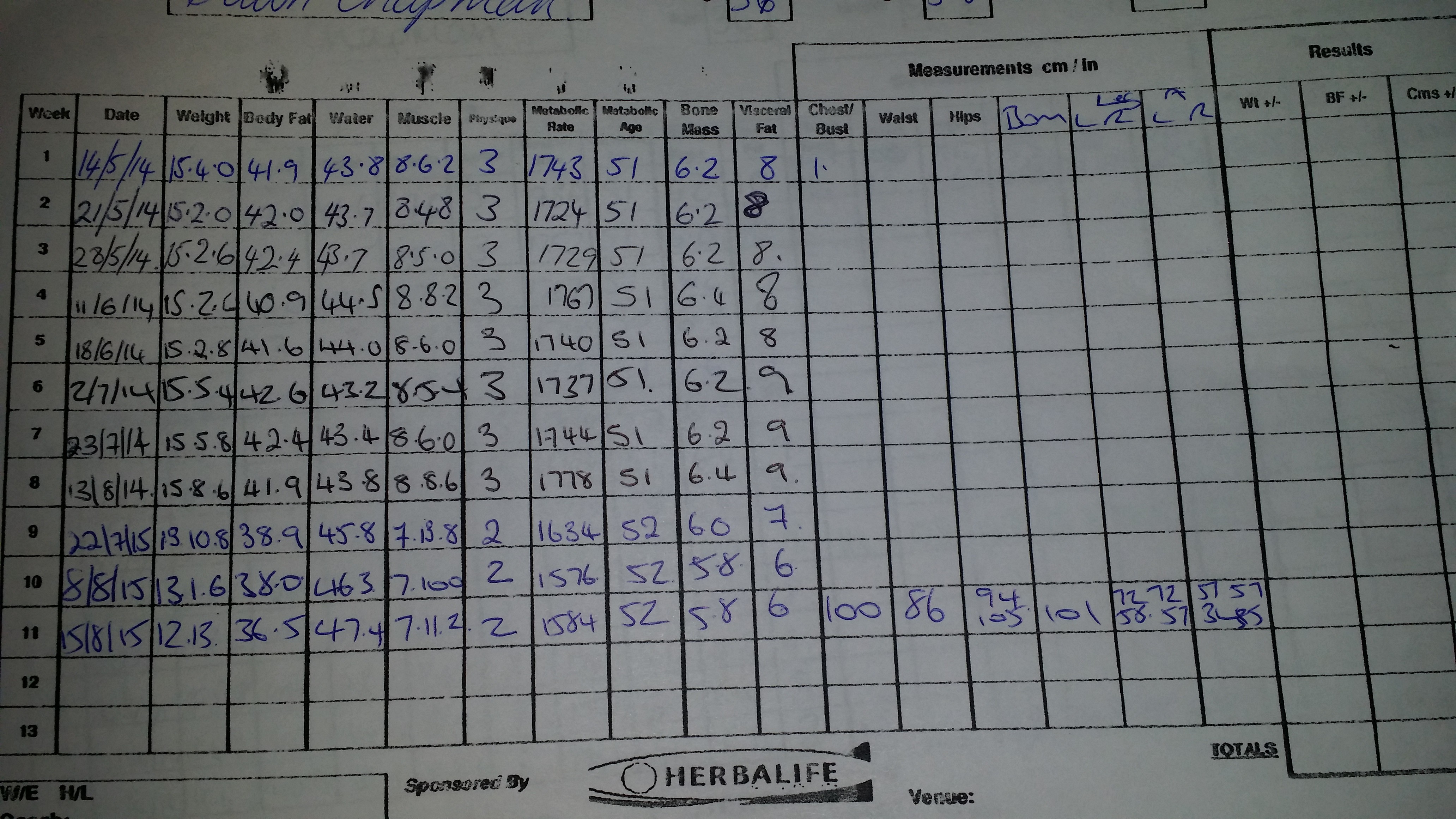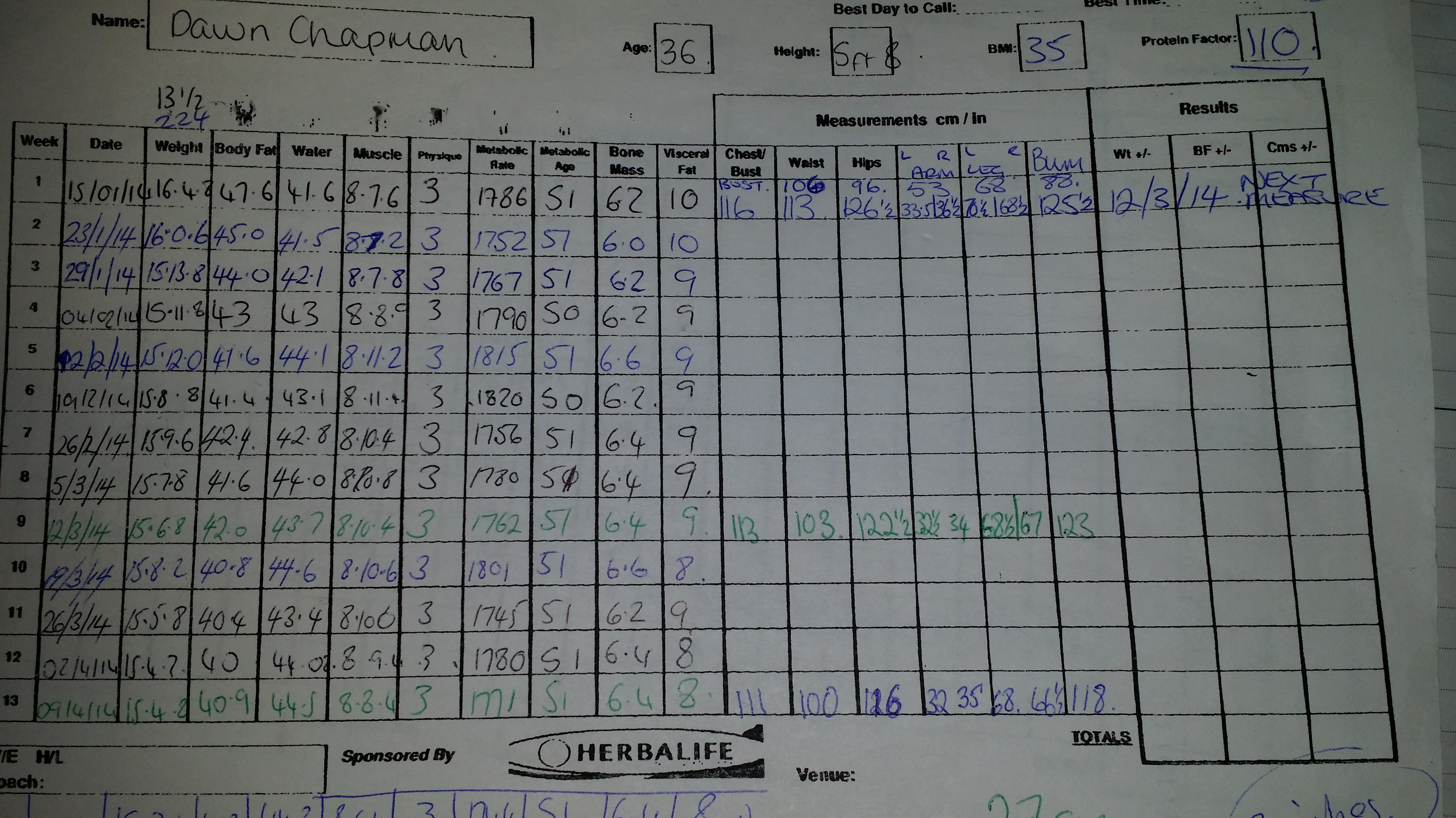 With the help of The Wellness Centre now I have different goals. I do still want to reduce my body fat down some because I want to build my muscle back up again. My metabolic rate is the lowest I’ve seen it in a long time, and this also needs to pick up.